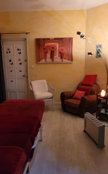 Au sein d'une paisible maison d'hôte, un salon de massage bien-être se dévoile : Françoise vous accueille dans un espace chaleureux au cœur de la maison, rempli de douceur et propice à la relaxation et à la sérénité.